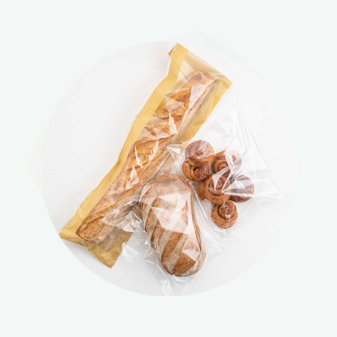 Our flat and gusseted bags are an affordable and simple way to package your products, and keep them fresh. They are ideal for crusty breads , fresh or frozen baked goods, fresh produce, deli meats and cheeses, dry foods, candy and more.
